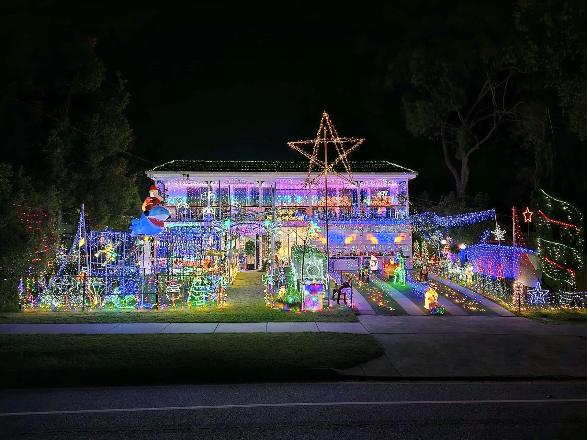 Prepare for a magical journey down a 30-meter driveway leading to a Christmas wonderland! This immersive display has it all: dinosaurs, dragons, rainbow sections, and even a smoke-breathing Treezilla. Don’t miss the homemade neons, Santa Jaws, and cheeky nods to Christmas movies. A perfect mix of Australiana and winter wonderland vibes, this display is a treasure trove of hidden gems!