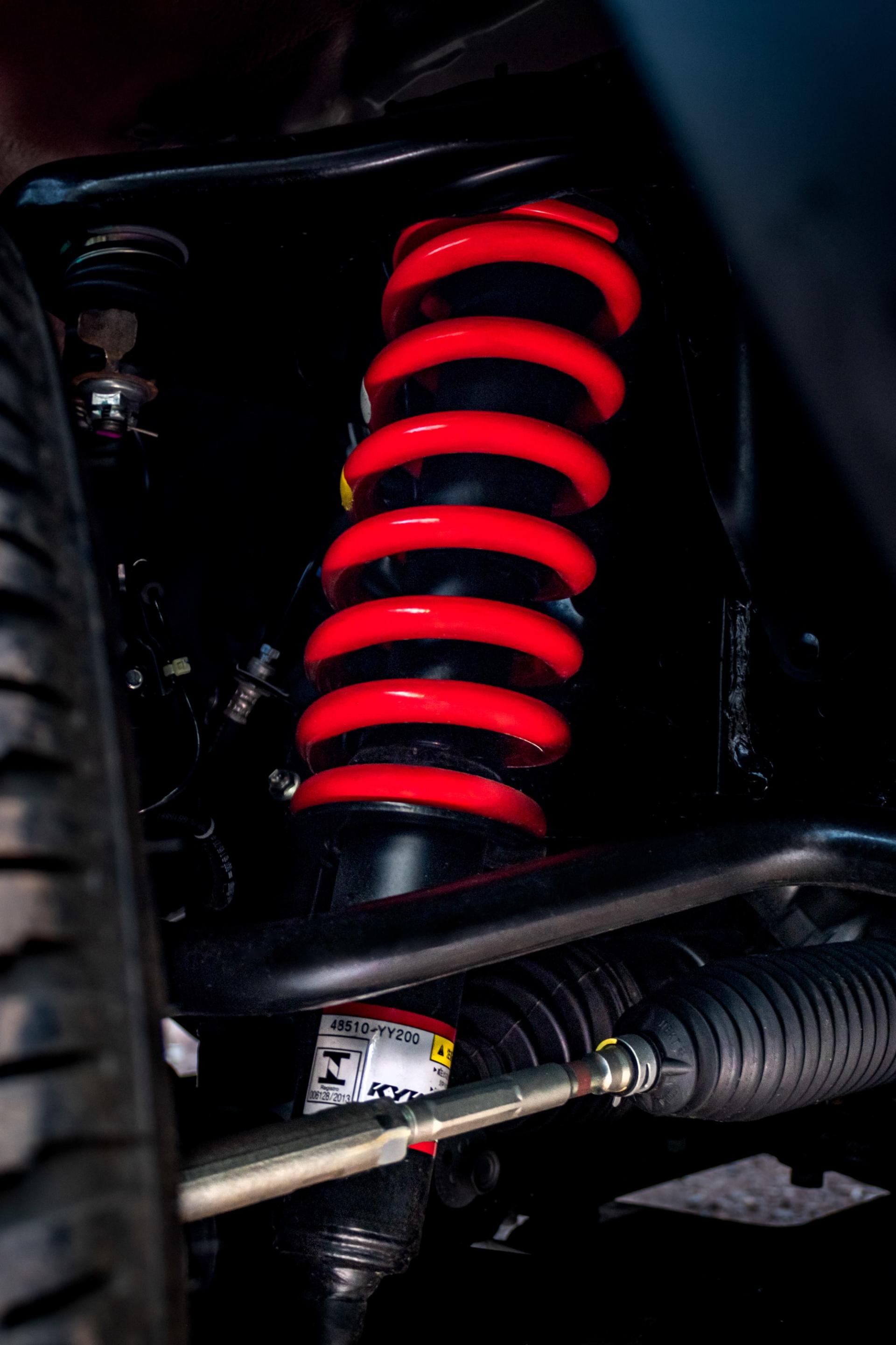 The new model includes a redesigned front end featuring the TOYOTA alphabet grille and an aggressive stance thanks to the extra track width. The increased ground clearance allows your eyes to be drawn to the striking suspension coils that proudly share the same red found on the GR badge that adorns the grille.