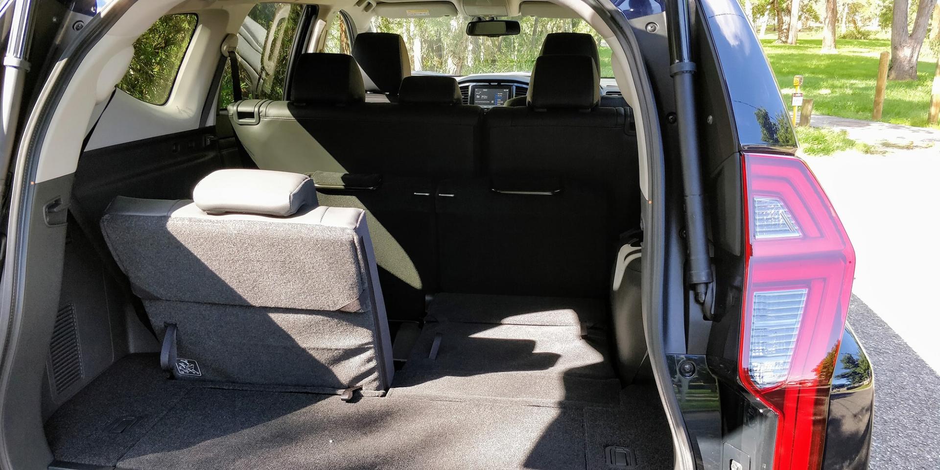 While you do sacrifice the third-row seating in entry GLX models, the payoff for cargo space is immense. At one square metre between the wheel arches with the back seat in use, and close to two metres of length with the second row folded down, the Pajero Sport is built to carry anything you need. Even with the third row in use, the under floor storage tray increases the Pajero Sports practicality immensely.